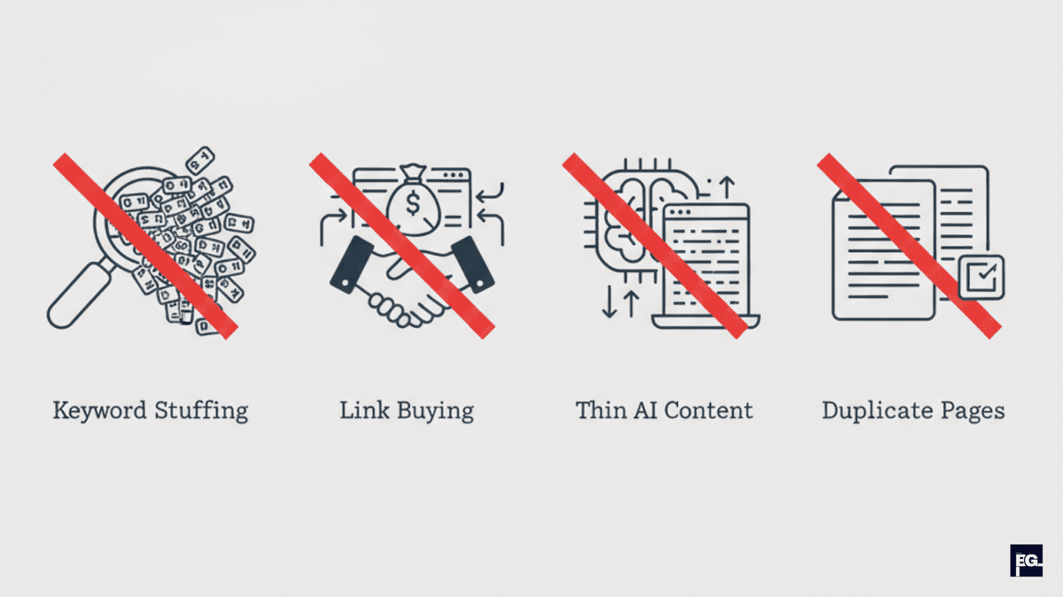 Understanding what doesn't work is equally important as knowing what does. Several SEO tactics that were effective as recently as 2024 now actively harm your rankings in 2026.